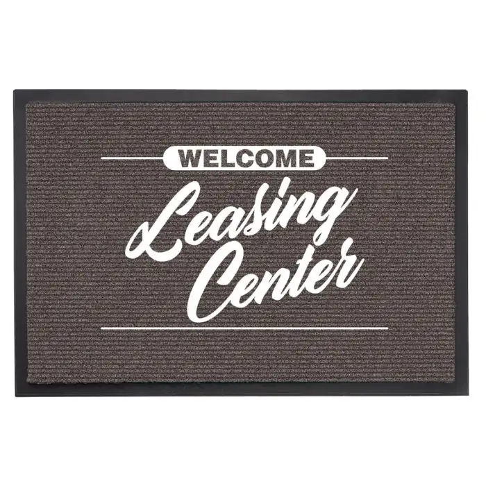 Keep your property clean and add a stylish touch with 2’x3’ Welcome Leasing Center Outdoor Mats. The heavy-duty, carpet-textured surface effectively traps dirt, debris, and moisture before it enters your leasing office, helping you cut down on maintenance costs and prevent slip and fall accidents. Choose from 3 designer colors including gray, tan, and burgundy. All mats ship today only from GABP Property!