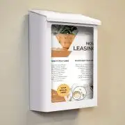 The durable plastic weather-proof box has a hinged lid to keep contents dry, allowing you to place it anywhere on your property. The front of the literature box has a full clear panel so whatever materials you place into the box will be noticed by the potential recipient, making this a great hands-off advertising tool. The box comes in both white and black color options, so that you can select the color that best compliments the look of your community.